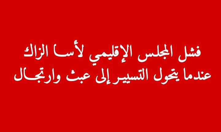 بعد سنوات من التسيير والانتظار والوعود، لم يعد خافياً على أحد أن المجلس الإقليمي لأسا الزاك يعيش حالة إفلاس حقيقي، سياسياً وتنموياً وإدارياً. لقد فشل المجلس في أن يكون رافعة تنموية حقيقية، وتحول إلى مجرد آلة لتوزيع الريع وتمرير الصفقات المشبوهة والترويج لإنجازات وهمية لا أثر لها على أرض الواقع.