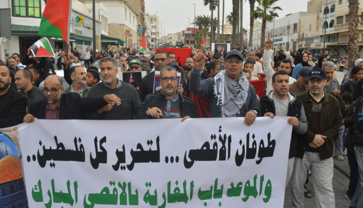 محتجون من آسفي يتضامنون مع المقاومة الفلسطينية ويوجهون رسالة لأصحاب مقولة كلنا إسرائيليون