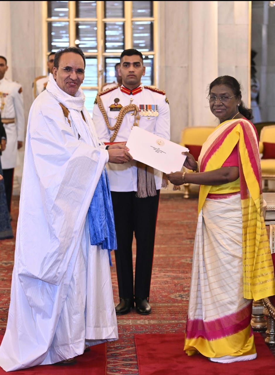 – قدم السفير الموريتاني في الهند أحمدو ولد أحمدو أوراق اعتماده لرئيسة جمهورية الهند دروبادي مورمو، باعتباره سفيرا فوق العادة وكامل السلطة لموريتانيا في الهند.