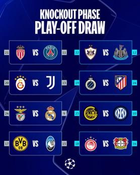 أسفرت قرعة الملحق المؤهل إلى دور السادس عشر لدوري أبطال أوروبا لكرة القدم ، الجمعة، عن مواجهات مثيرة، أبرزها موقعة بنفيكا البرتغالي وريال مدريد الإسباني من جديد.