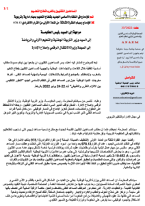 الجمعية الوطنية للمساعدين التقنيين والمساعدين الإداريين قطاع التعليم تراسل رئيس الحكومــــة، ووزير التربية الوطنية، ووزيرة الانتقال الرقمي وإصلاح الإدارة.