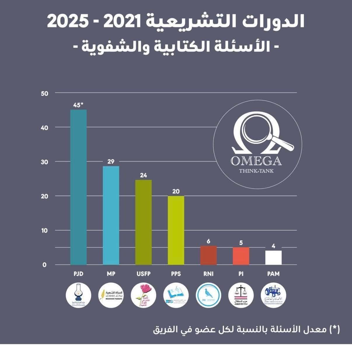 تكشف إحصائيات الأسئلة الكتابية خلال الولاية النيابية (أكتوبر 2021 – دجنبر 2025) عن تفوق لافت لحزب العدالة والتنمية، الذي سجل معدلا يقارب 45 سؤالا لكل نائب، متجاوزا بذلك باقي الأحزاب رغم محدودية تمثيليته داخل البرلمان.